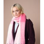 100% recycled polyester. Luxury soft touch fabric. Oversized styling. Checkered design. Chunky, wrap around design. Tassel trim. Removable adhesive fabric label.
